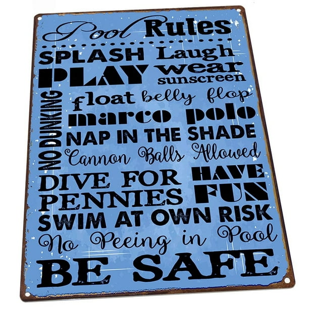 Blue Pool Rules 9 X12 Metal Sign Wall Decor For Porch Patio Or Deck Walmart Com